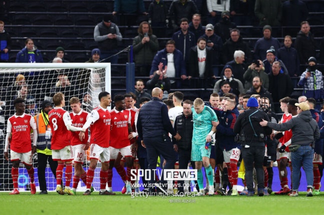 在此过程中发生了令人震惊的事件。托特纳姆热刺队观众趁机向拉姆斯代尔门将发起射门。阿森纳队也没能控制住兴奋情绪,冲了上去。主教练米克尔·阿特塔急忙收拾局面。率领球队前往客场球迷,事件告一旦告一旦。